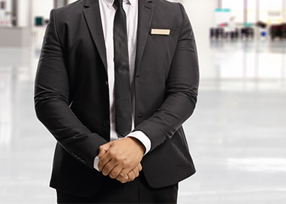 施設を利用される方への最初の対応者として、品位ある姿勢での応対を行います。一次対応者として、来客者と訪問先との間に立つことで、不要な来客者との接点をつくる機会を排除し、安全性と快適性を高め、守ります。